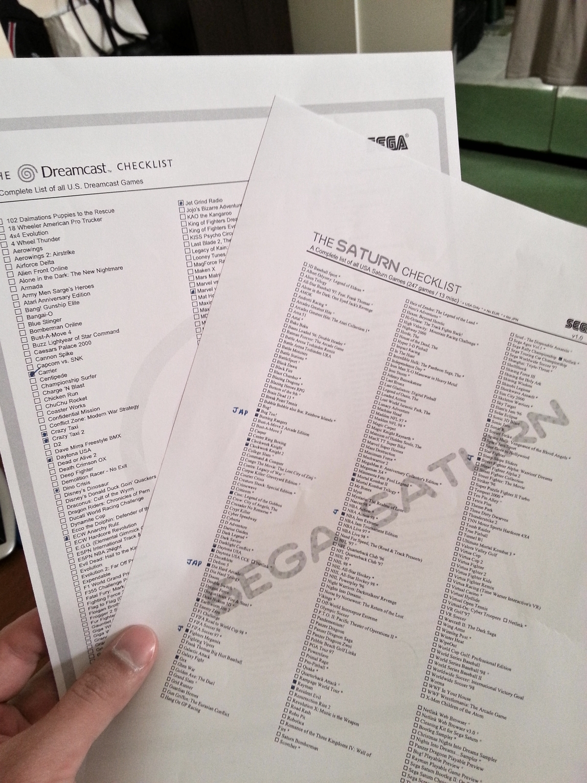 Updating and ticking my owned games. Very useful for Sega collectors although some games are missing like the Japanese only fighters like xmen vs Street Fighter.